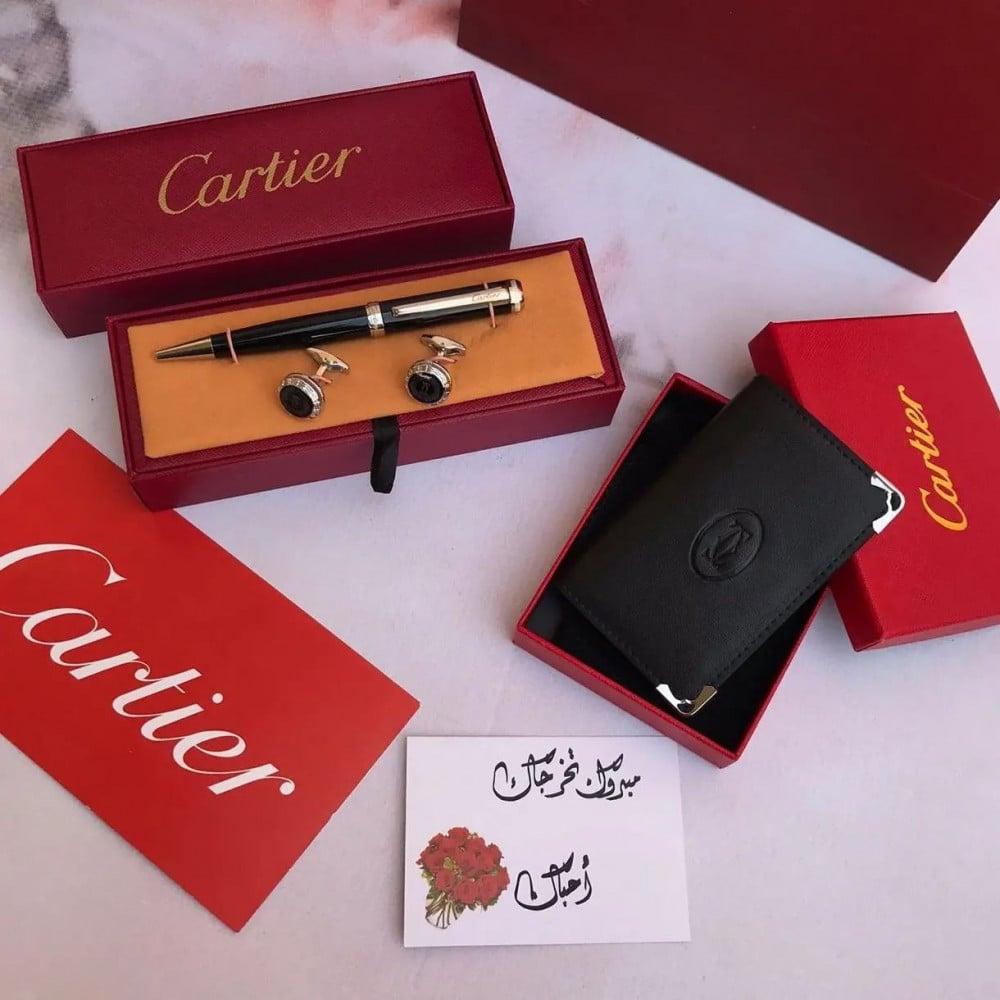 يتكون من كبك أنيق، قلم راقٍ، ومحفظة عملية.